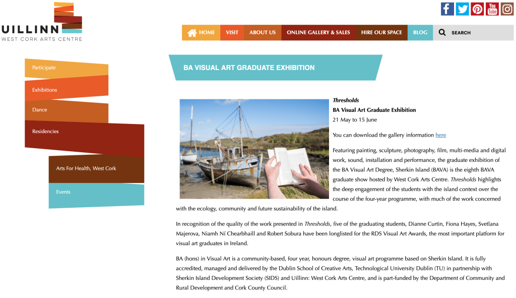 - 2022 Graduate of DIT Dublin School of Creative Arts, BAVA Sherkin. First class honours.